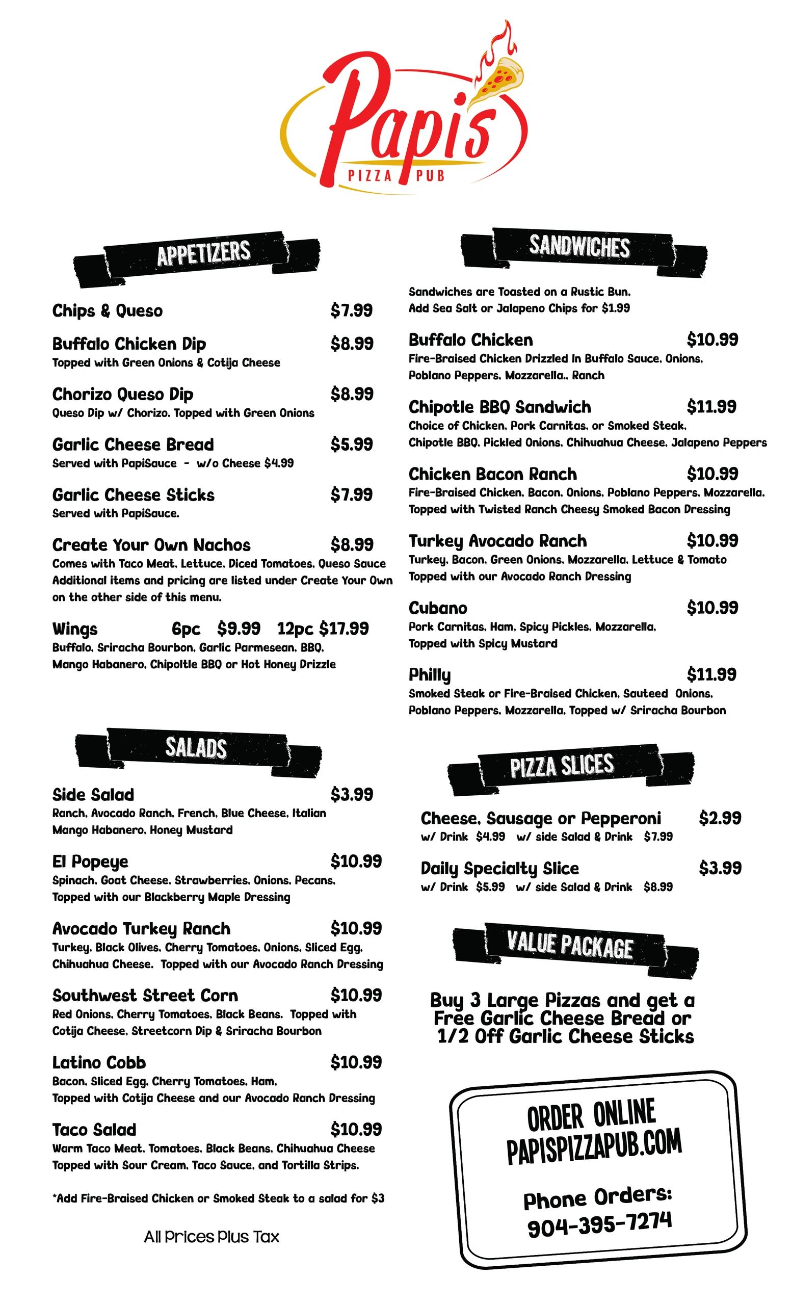 Value Package: Buy 3 Large Pizzas and receive a free order of Garlic Cheese Bread or Half Off Garlic Cheese Sticks